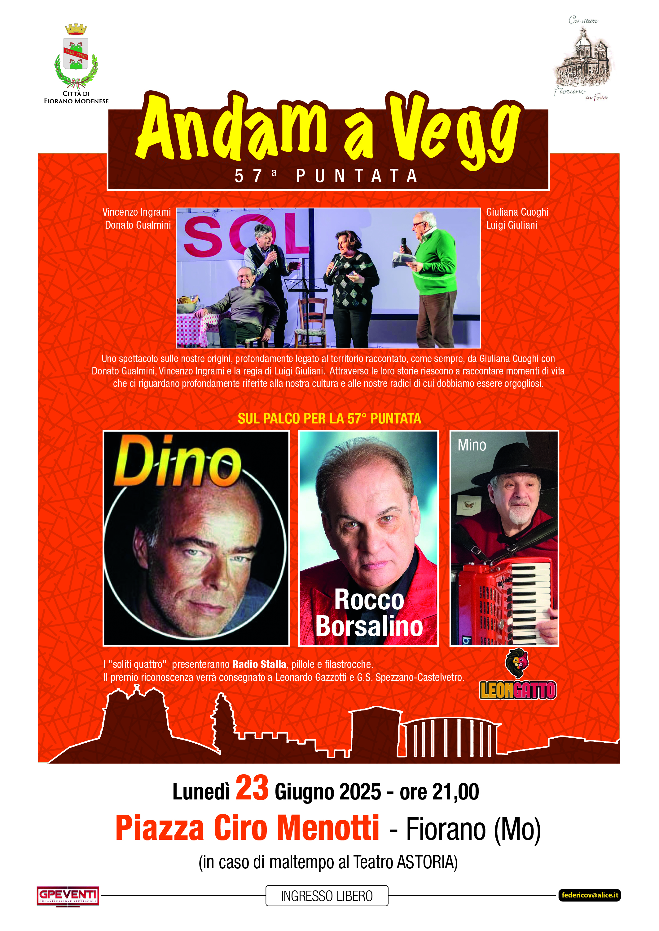 Si alterneranno sul palco: Dino, Rocco Borsalino e Mino.
