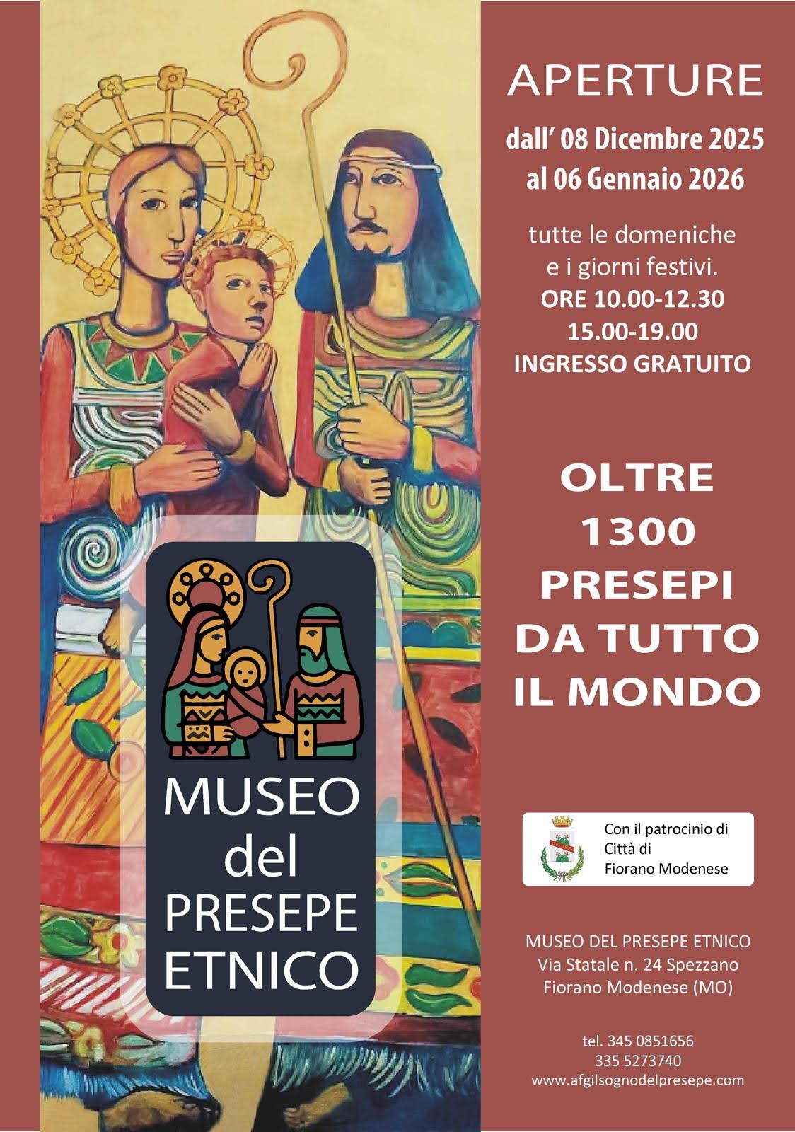 A partire da Lunedì 8 Dicembre 2025, in occasione delle festività natalizie, riprendono le aperture del Museo del Presepe Etnico a Spezzano di Fiorano Modenese.