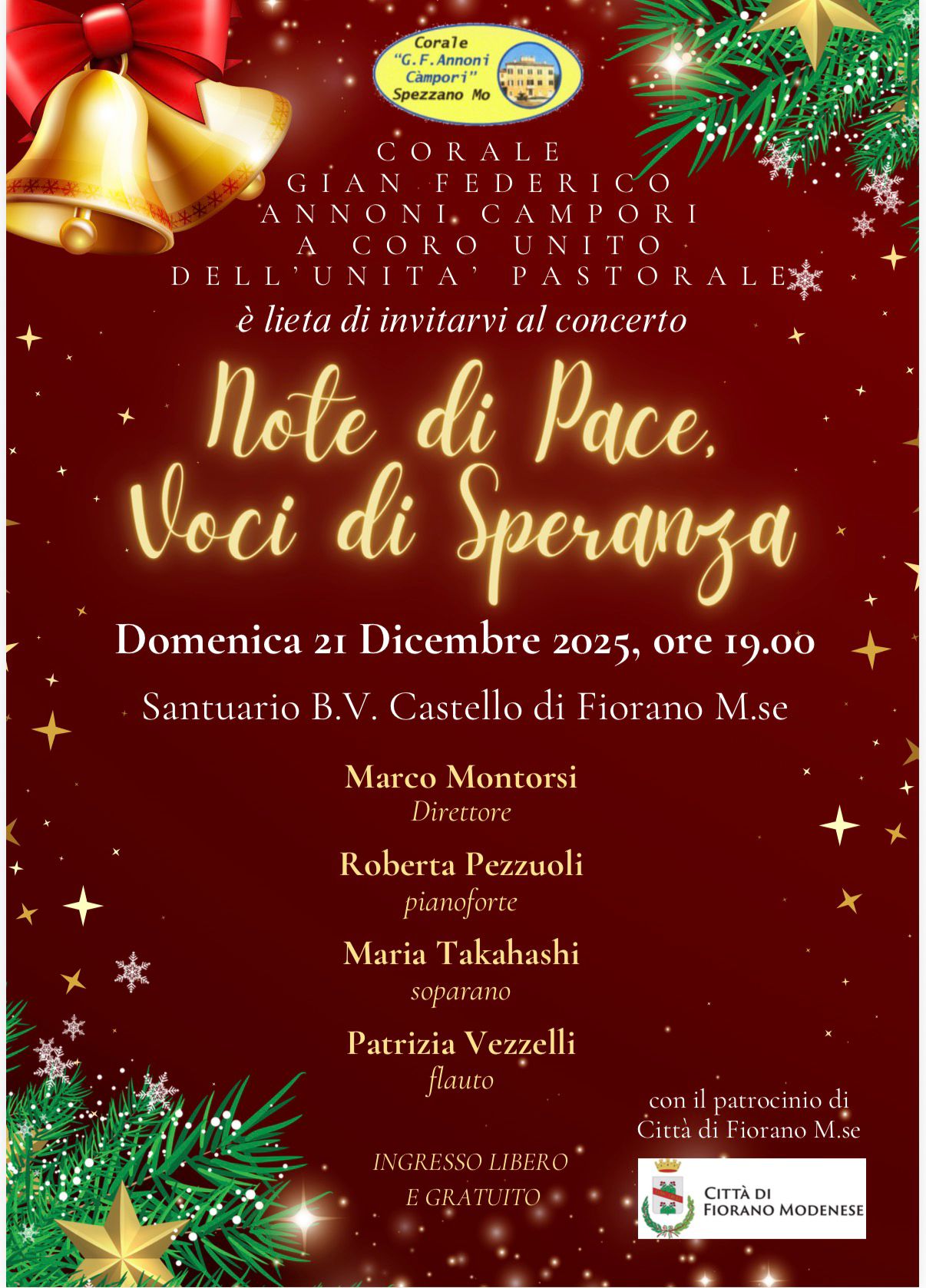 La Corale Gian Federico Annoni è lieta di invitarvi al concerto "Note di pace, voci di speranza", diretto da Marco Montorsi con Roberta Pezzuoli al pianoforte, Maria Takahashi soprano e Patrizia Vezzelli al flauto.