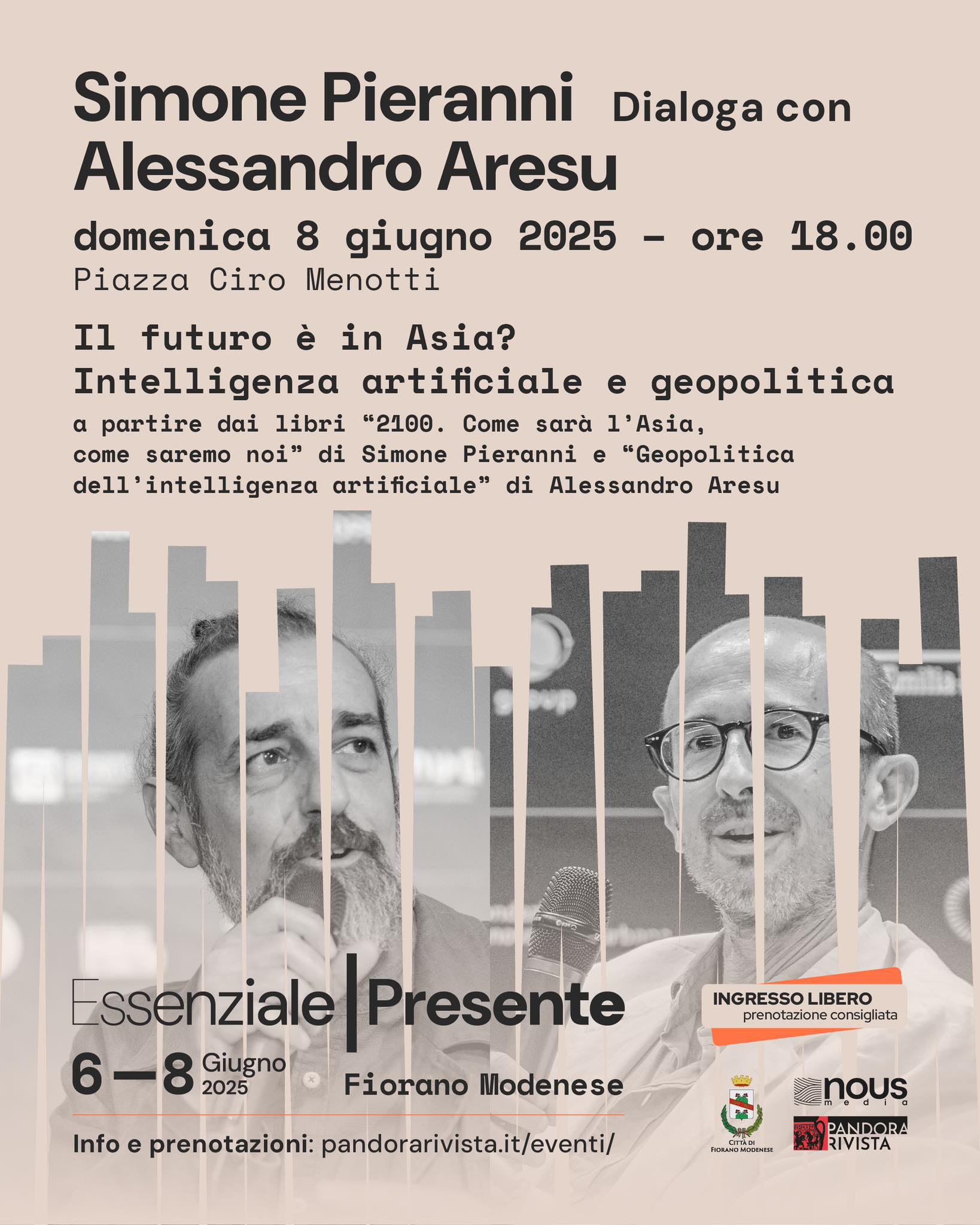 Dialogo tra gli autori dei libri: "2100. Come sarà l'Asia, come saremo noi" di Simone Pieranni e " Geopolitica dell'intelligenza artificiale" di Alessandro Aresu.