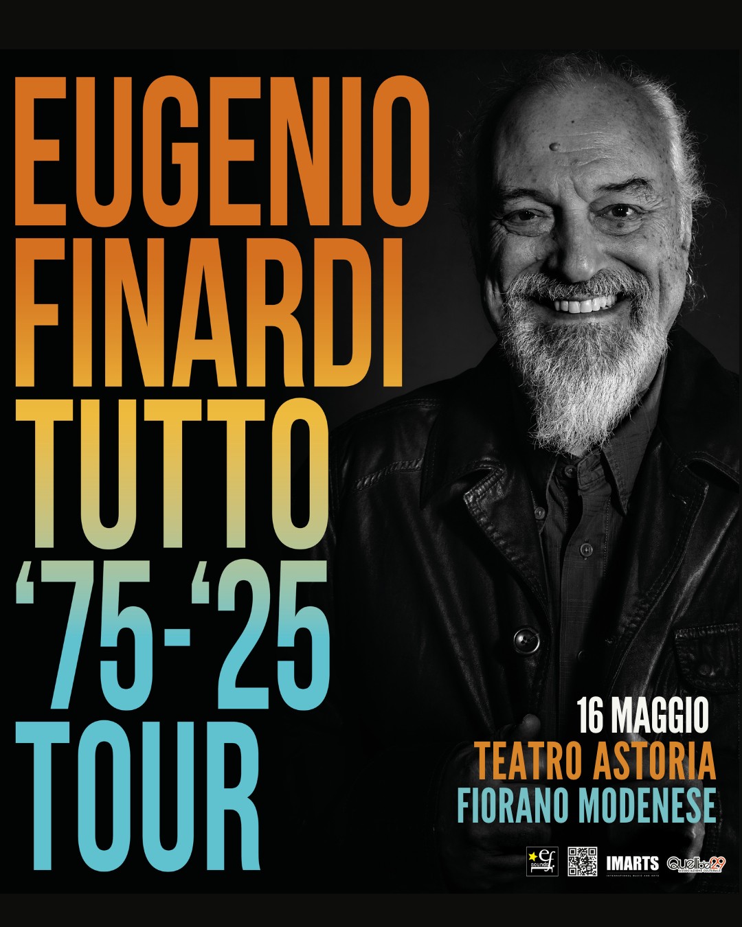Venerdì 16 maggio, appuntamento a Fiorano Modenese per la DATA ZERO del nuovo tour di Eugenio Finardi: 𝐄𝐮𝐠𝐞𝐧𝐢𝐨 𝐅𝐢𝐧𝐚𝐫𝐝𝐢 𝐥𝐢𝐯𝐞 – 𝐓𝐔𝐓𝐓𝐎 ‘𝟕𝟓–‘𝟐𝟓 𝐓𝐨𝐮𝐫