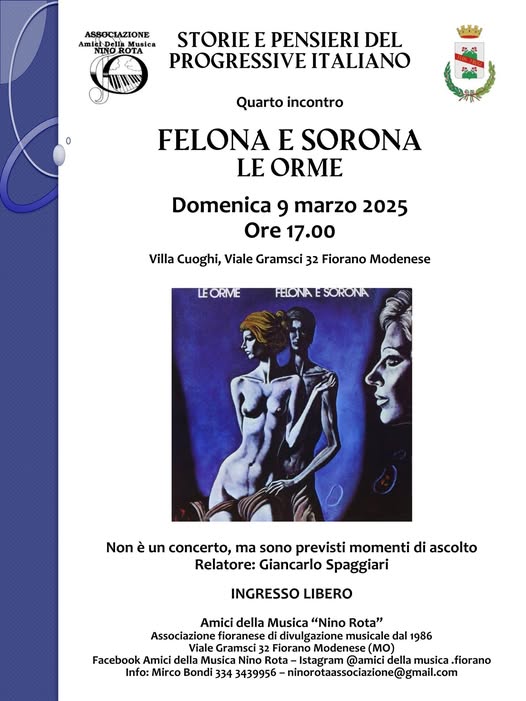 Per la rassegna "Storie e pensieri del progressive italiano" si terrà il quarto incontro relativo all'album de Le Orme "Felona e Sorona"