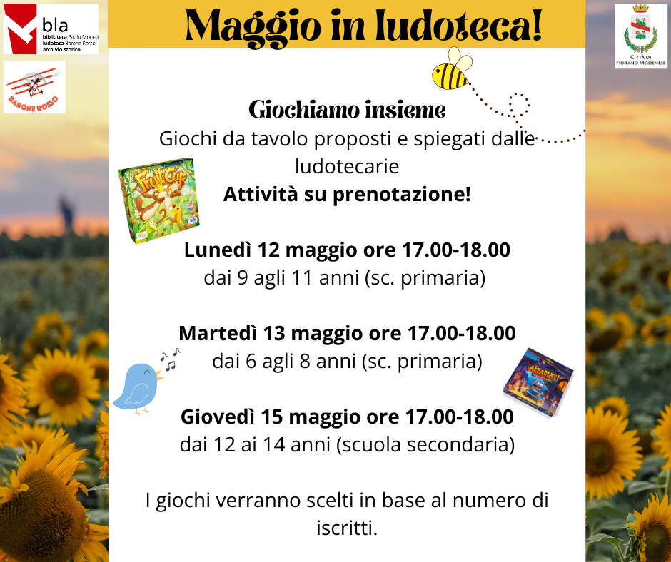 Per informazioni e iscrizioni: ludoteca@fiorano.it o 0536 833414 (negli orari di apertura)