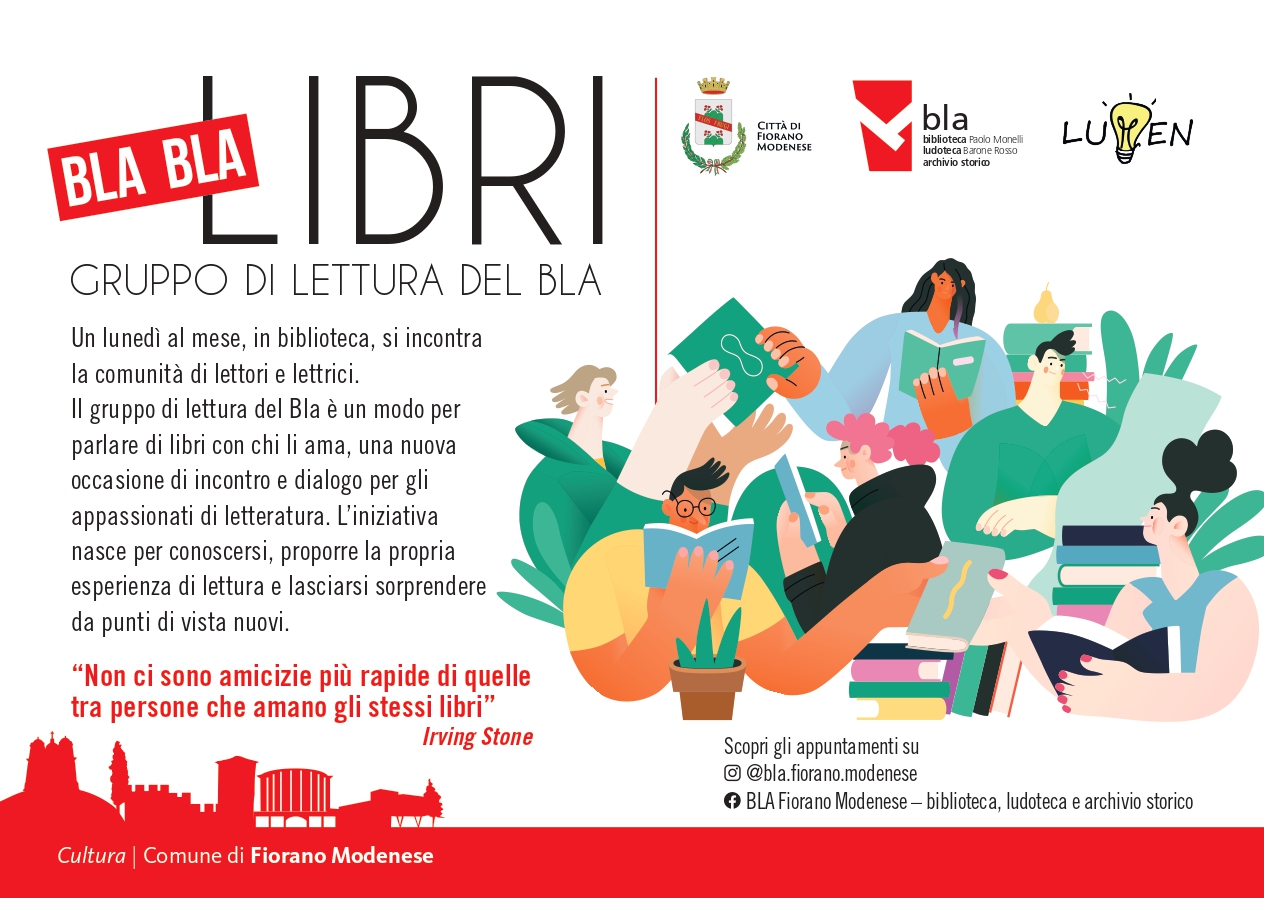 Il gruppo di lettura del Bla è un modo per parlare di libri con chi li ama, un'occasione di incontro e dialogo per gli appassionati di letteratura. L’iniziativa nasce per conoscersi, proporre la propria esperienza di lettura e lasciarsi sorprendere da punti di vista nuovi.