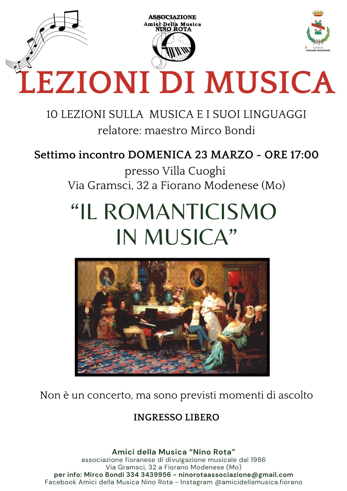Questo incontro dal titolo "Il romanticismo in musica" si terrà a Villa Cuoghi domenica 23 marzo alle ore 17:00.