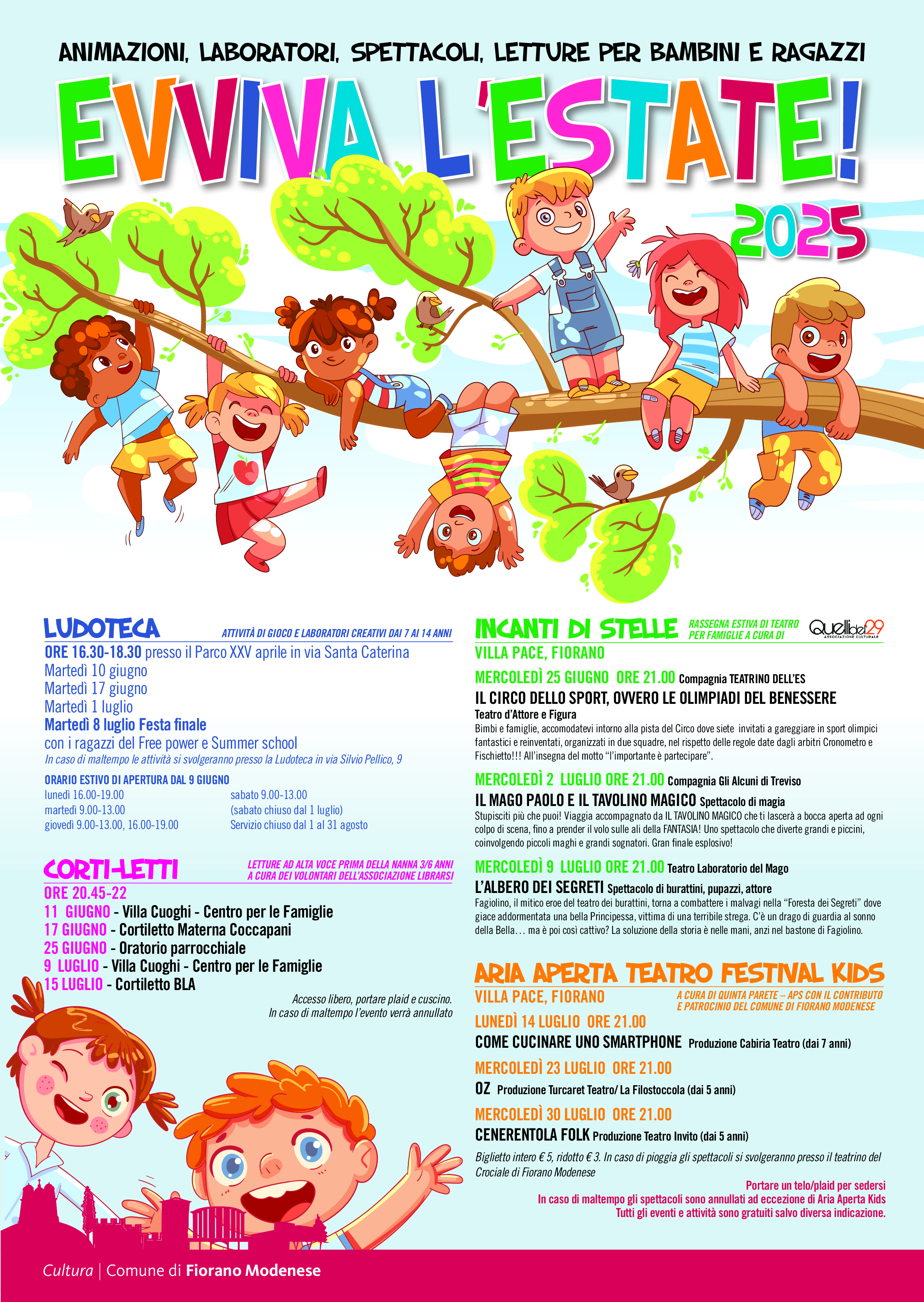 Gli spettacoli, tutti a ingresso gratuito, si svolgeranno all’interno del parco per cui occorre portare un telo o plaid per sedersi; in caso di pioggia saranno annullati.