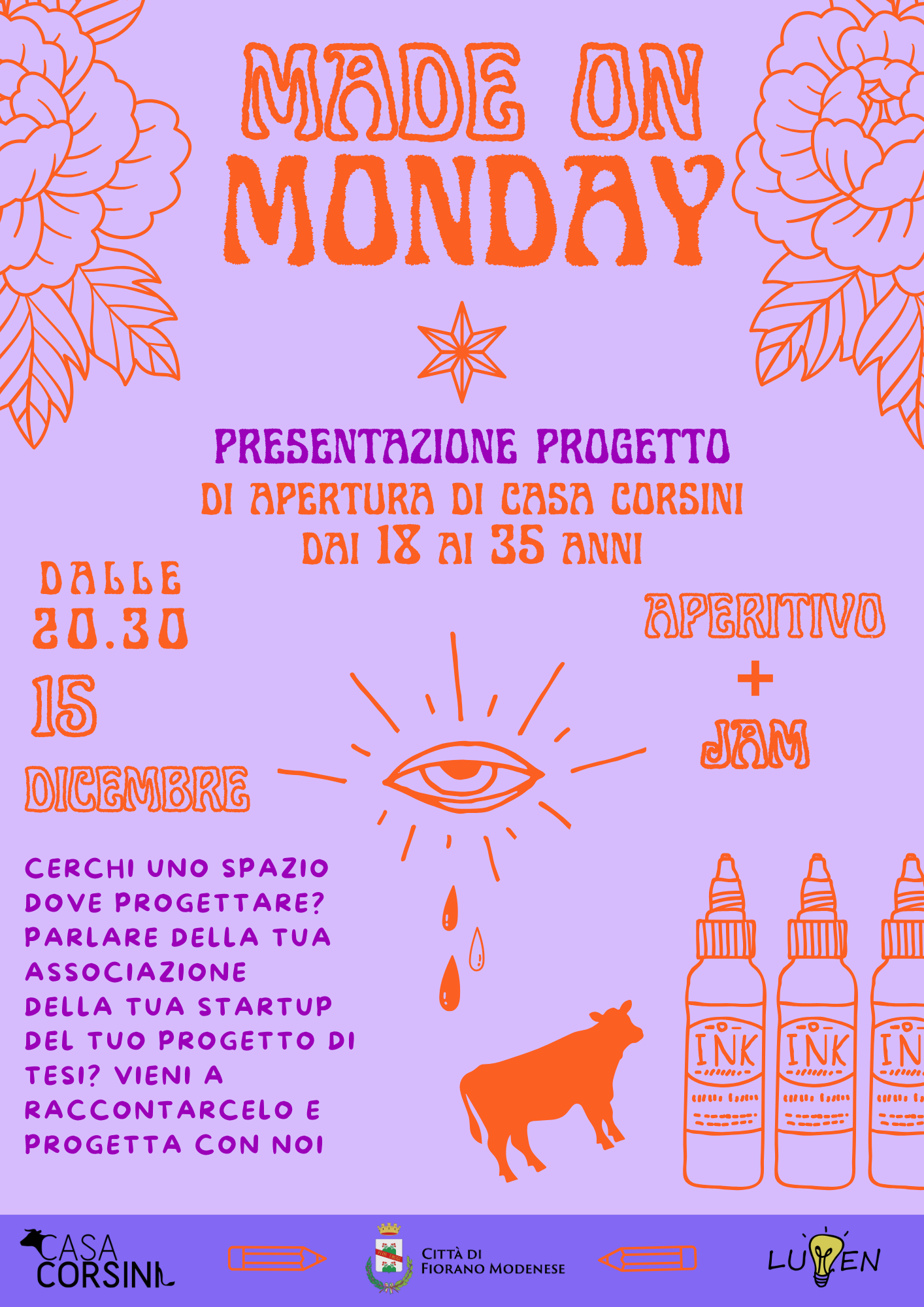 Il Comune di Fiorano Modenese, in collaborazione con l’associazione Lumen, propone “Made On Monday”, un progetto pensato per dare nuovi spazi ai giovani del territorio e valorizzare Casa Corsini come luogo di incontro, creatività e partecipazione.