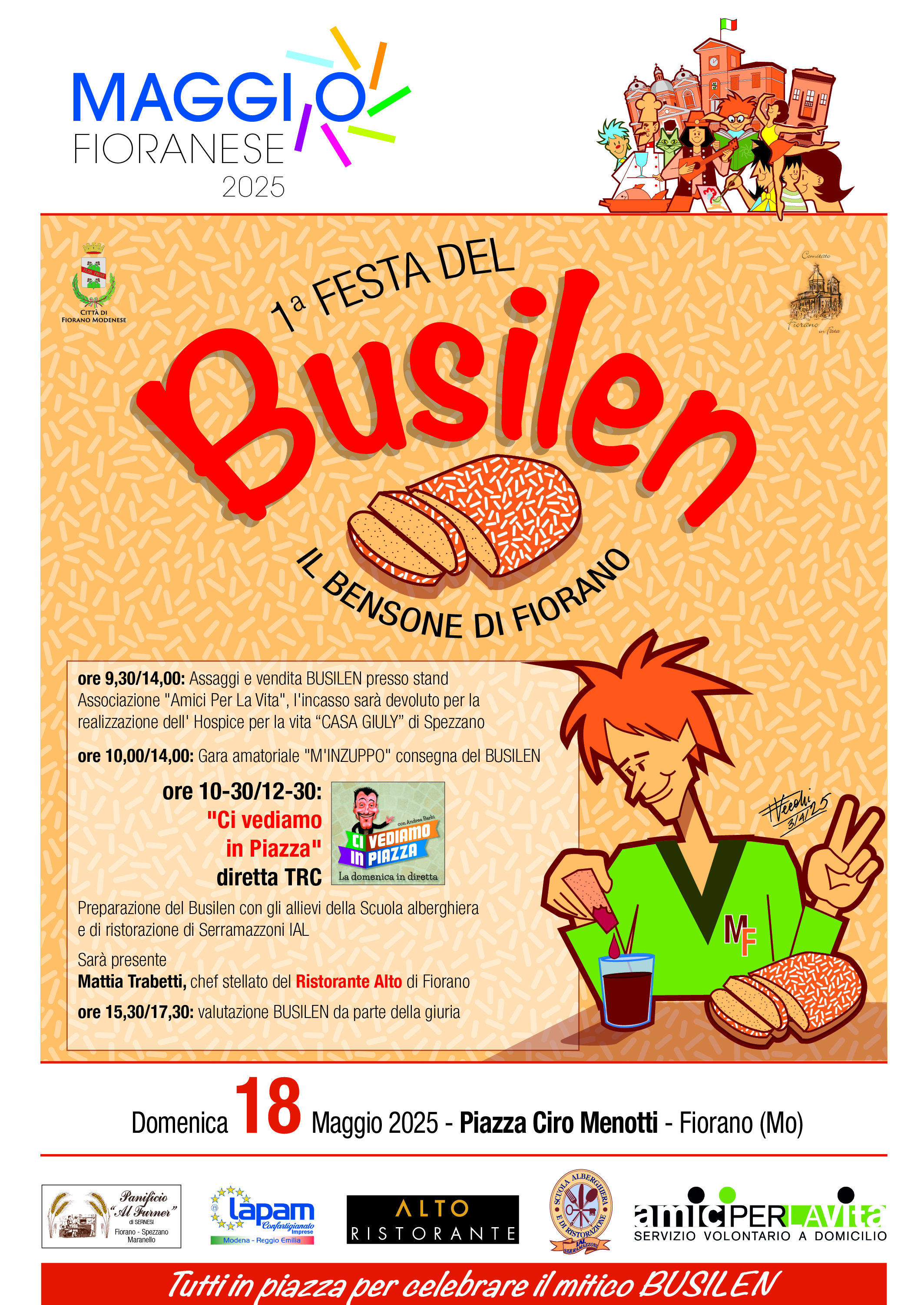 Dalle 9:30 alle 14:00 assaggi e vendita BUSILEN presso stand dell'associazione "Amici per la vita", l'incasso sarà devoluto per la realizzazione dell'hospice per la vita "Casa Giuly" di Spezzano