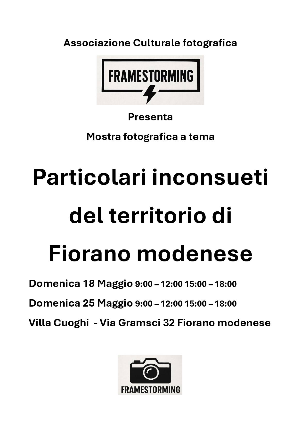 L'associazione fotografica Framestorming presenta la mostra "Particolari inconsueti del territorio di Fiorano Modenese".