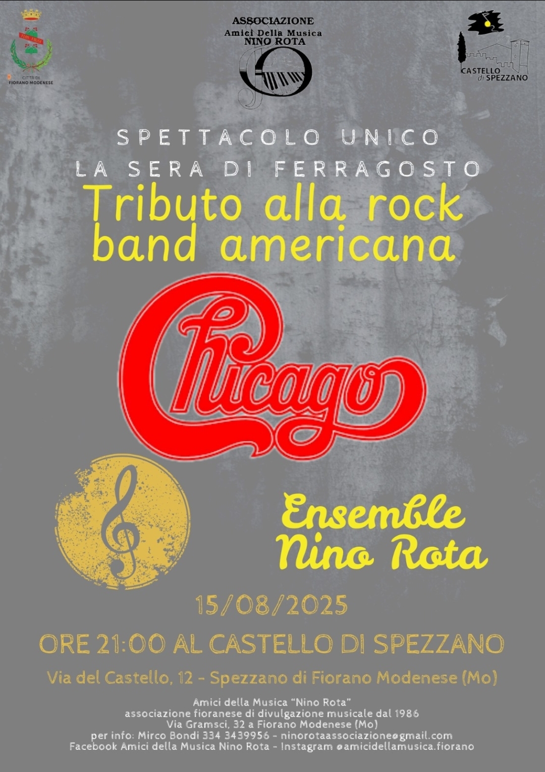 Omaggio alla band statunitense dei Chicago, con brani jazz, rock e progressive estratti dai primi dischi e riarrangiati per l’Ensemble di Fiati Nino Rota.