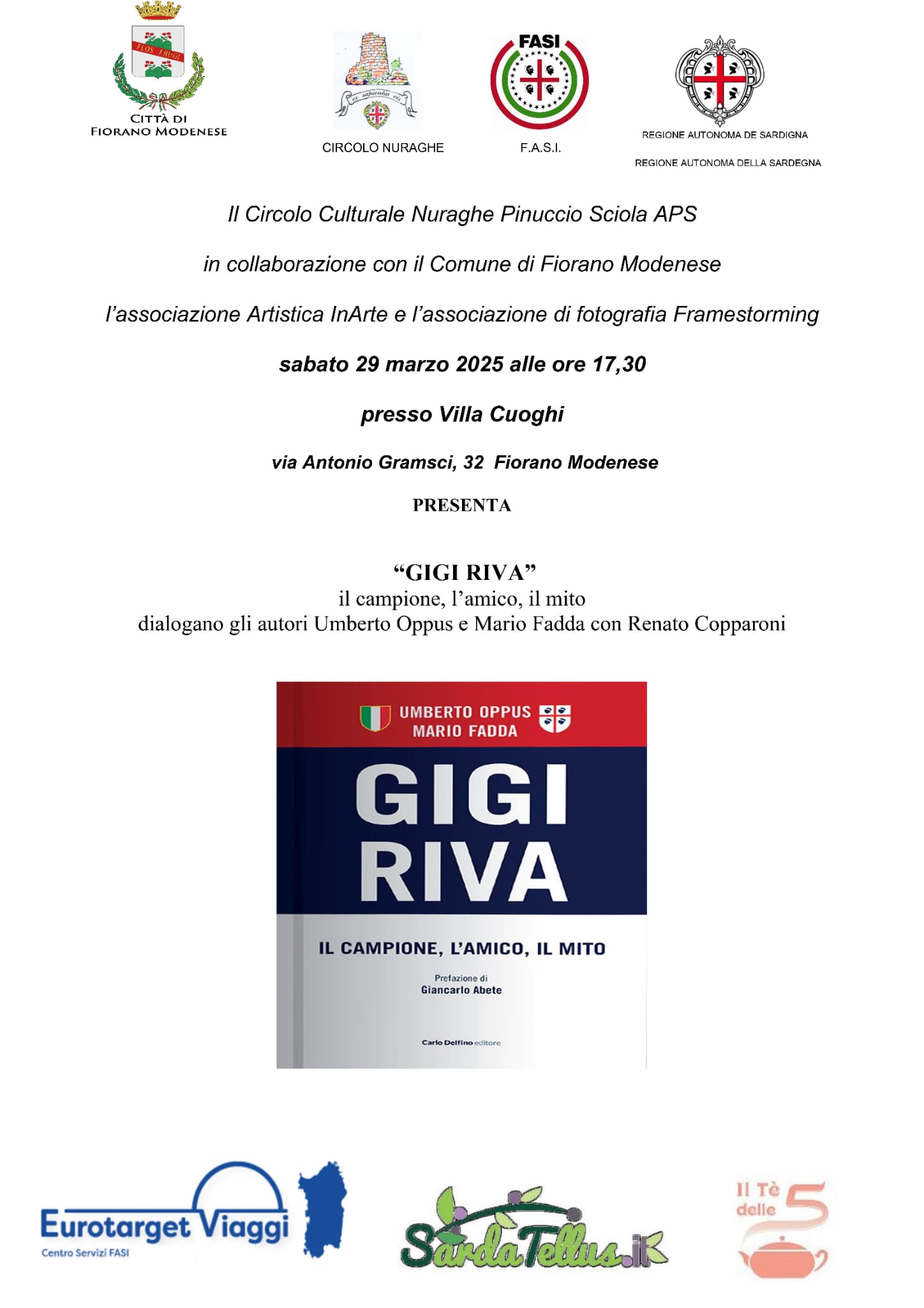 Gli autori Umberto Oppus e Mario Fadda, presentano il loro libro "Gigi Riva. Il campione, l'amico, il mito", dialogando con Renato Copparoni.
