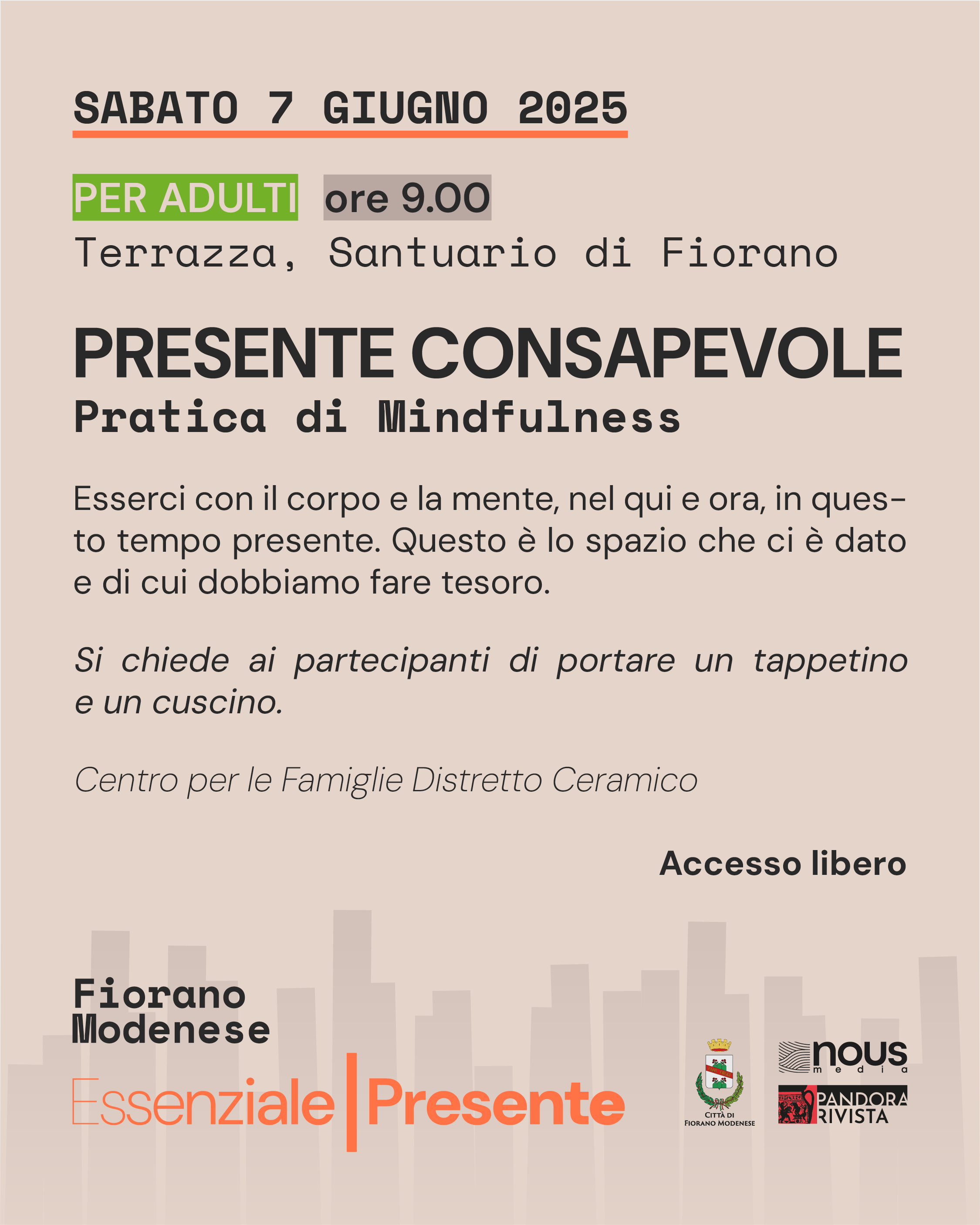 Esserci con il corpo e la mente, nel qui e ora, in questo tempo presente. Questo è lo spazio che ci è dato e di cui dobbiamo fare tesoro.