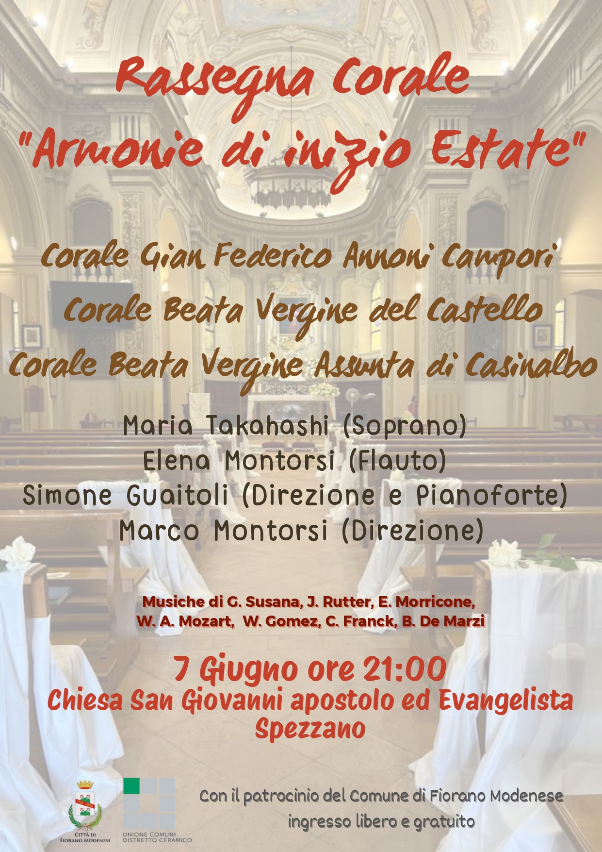 - Sabato 7 giugno ore 20.30 presso la Chiesa parrocchiale di Spezzano.