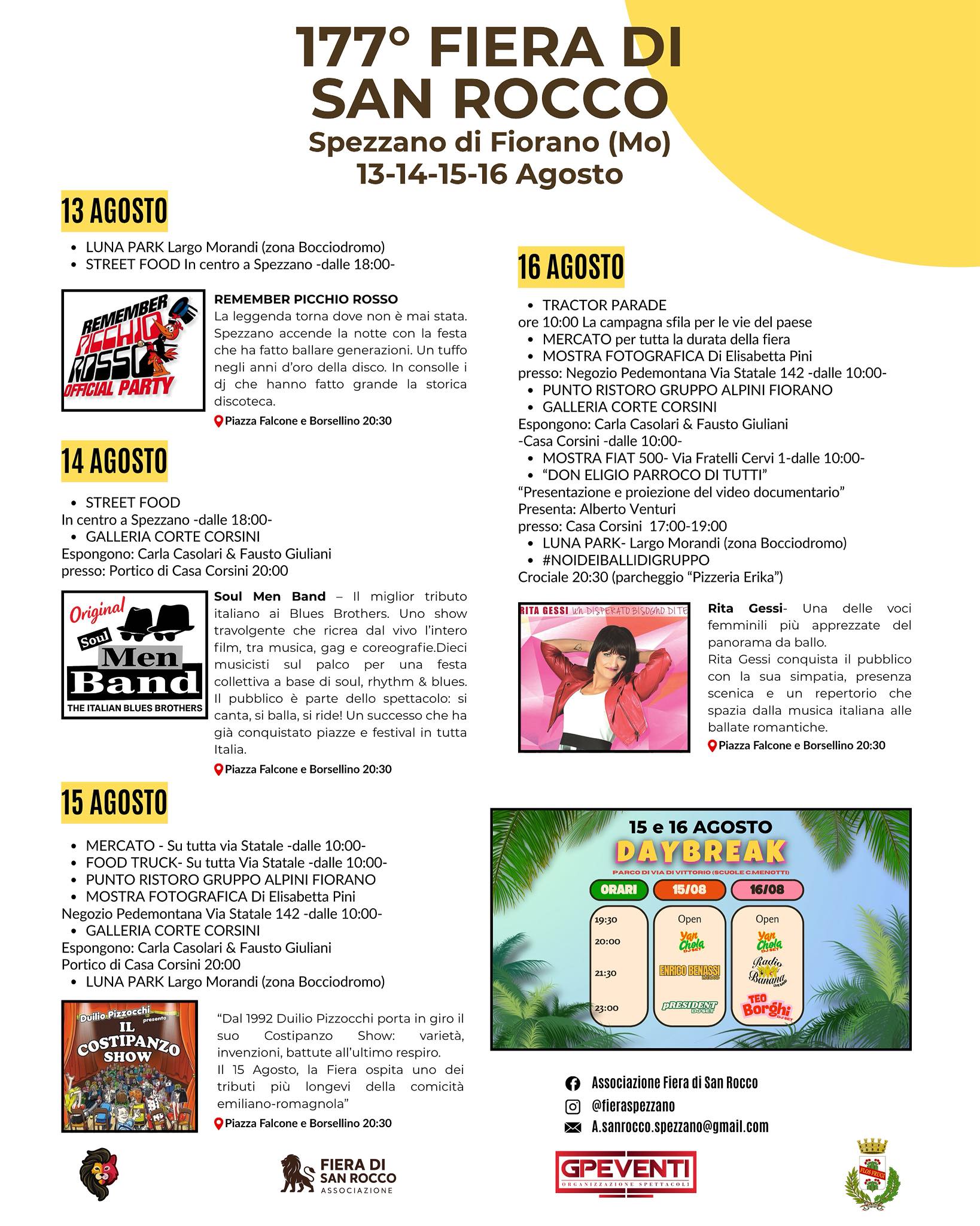 In occasione della Fiera di San Rocco, sabato 16 agosto 2025, serata dedicata al liscio in piazza Falcone e Borsellino con Rita Gessi e la sua orchestra, dalle ore 20.30. Ingresso libero e gratuito.